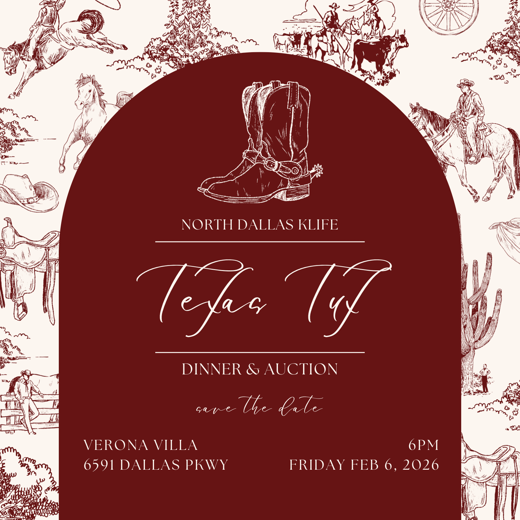 Texas Tux is our annual winter fundraising gala- complete with a stellar silent auction, genuine fellowship of new and old families, delicious dinner, a program put on by KLIFE staff/students, silent auction, and entertaining live auction!